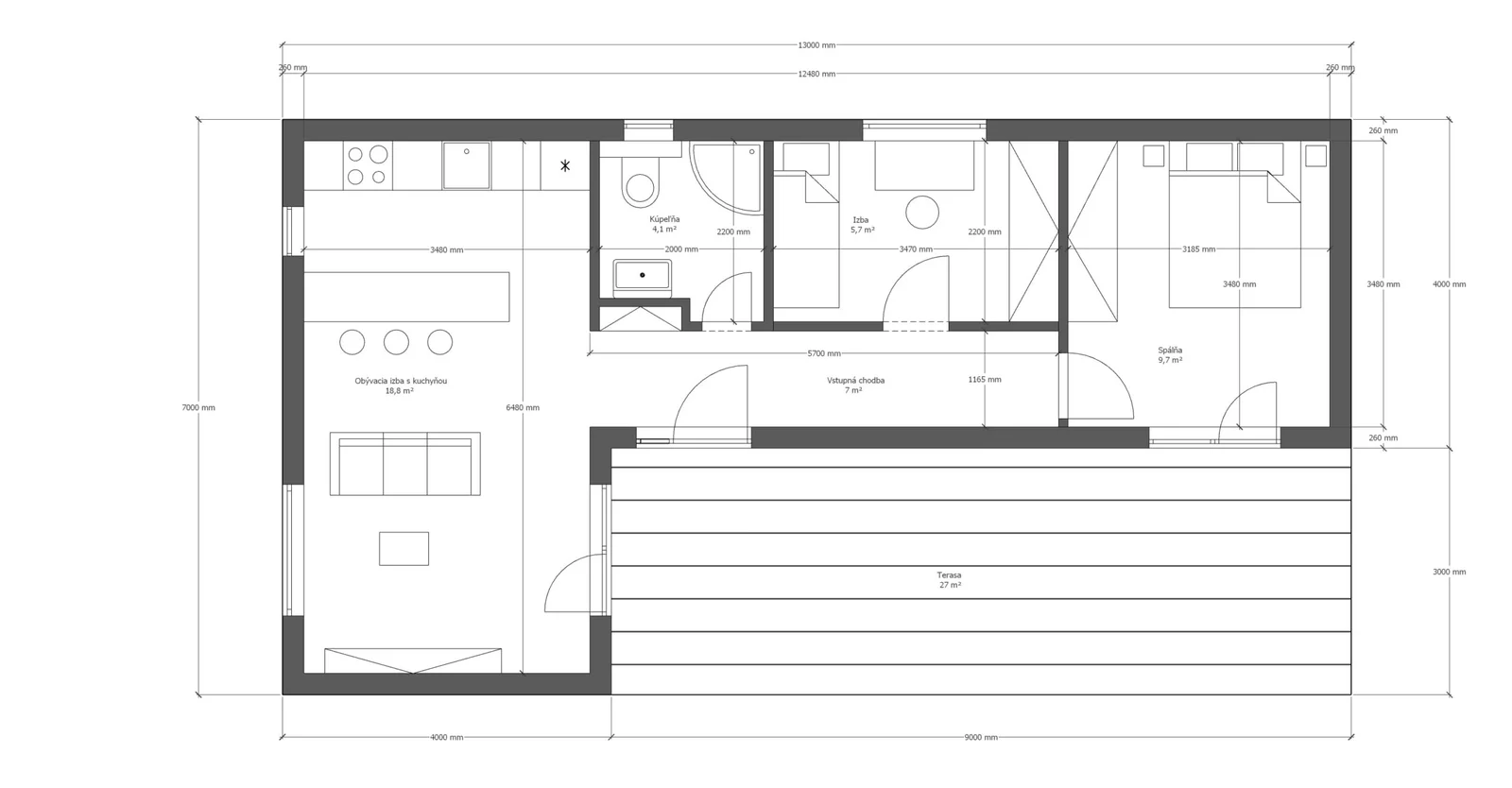 - Main entrance door 1300 x 2200 mm